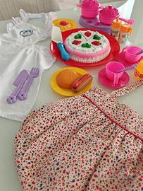 Set cucina per bambina con grembiulino, borsa, torta e altri accessori TUTTO COME DA FOTO