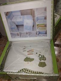 set culla unisex 100% cotone marca pastello composto da paracolpi,trapunta e lenzuola ideale come regalo per baby shower o per tenere un coordinato unisex
