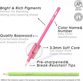 Colori ricchi, vibranti, atossici, resistenti allo sbiadimento. Eccellenti qualità di miscelazione e ombreggiatura che porteranno la tua opera d'arte a un nuovo livello. Queste matite si fondono bene anche con altre crusche premiere, aggiungendo valore reale alle tue forniture artistiche complessive.