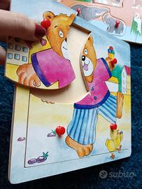 Vendo 3 giochi in legno: 2 puzzle in legno classici da bambini piccoli e un gioco puzzle - fiore da costruire con il filo.