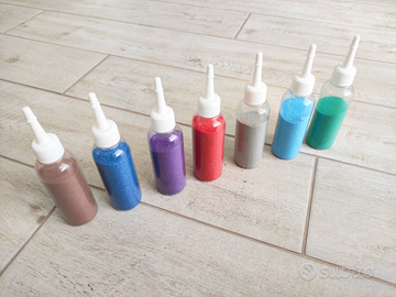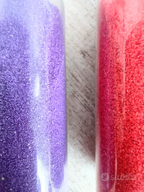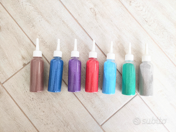 Set di 7 confezioni di sabbia decorativa sintetica colorata vari colori (vedi foto).