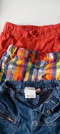 Set di 8 pantaloni per bambino/a taglia 18 mesi, composto da: - Salopette verde, - Pantaloncini a quadri rossi- Pantaloncini di jeans blu Guess - Pantaloncini di jeans chiari Primigi- Pantaloncini blu scuro Gant- Pantaloni verdi- Pantaloncini cargo blu scuro Brums- Pantaloni cargo blu navy