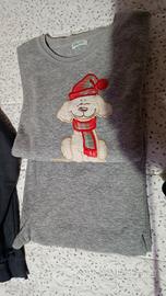 Set di abbigliamento bambino/a anni 4+5 composto da: 1 pigiama grigio in pile con applicazione sul davanti marca Benetton, 1 felpa blu con cappuccio in cotone e 1 felpa multicolore in pile. Ritiro gratuito a Cornaredo.