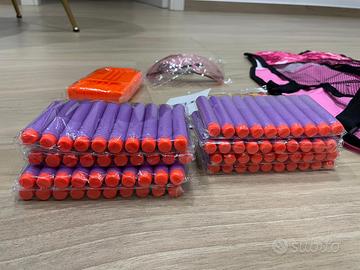 Set di giubbotti tattici per pistole Nerf - Questo set di giubbotti tattici NEFR N-Strike Elite Series include: 1 x giubbotto tattico (Rosa) + 1 x clip a caricamento rapido + 1 x custodia per freccette + 1 x cinturino da polso + 1 x occhiali + 1 x maschera tattica + 30 x freccette proiettili morbide di ricarica