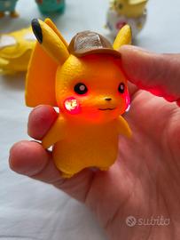 Set di 7 action figures Pokémon che include personaggi iconici come Pikachu (con luci a LED nelle guance), Meowth, Litten, Piplup, Bulbasaur, Magikarp e Togepi. Le figure sono realizzate in plastica resistente e sono in buone condizioni. Alcuni di questi personaggi, come Pikachu con cappello da detective, dispongono di funzioni interattive (luci LED attivabili). Perfetti per collezionisti di gadget Pokémon o per bambini appassionati della serie.