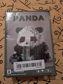 Vendo un adorabile set di costruzioni a mattoncini (tipo mini blocks) per creare un simpatico Panda seduto che tiene un bambù.