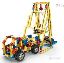 Questa confezione di costruzioni Engino contiene 498 pezzi, 1930 punti di connettività e due motori ad uscita doppia compatti alimentati da un telecomando a filo progettato per funzionare anche ad energia solare. I 100 modelli creati sono più grandi e più elaborati di quelli della serie Basic e possono muoversi proprio grazie alla motorizzazione.