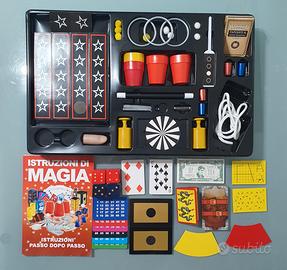 Usato poco e nonostante ciò si sono smarriti 2 giochi ( non sono presenti: il gioco moneta appuntita e il gioco anello) in più regalo: Capello magico, foulard, Secret Box, carte magiche e libretto di istruzioni Clementoni. Confezione del set di giochi rovinata, la confezione della Clementoni non verrà spedito per fare un imballaggio più piccolo, vedi foto. Modello progettato e pensato per far diventare i bambini dei prestigiatori, ideale per principianti e bambini (indicato per l'età 6+).