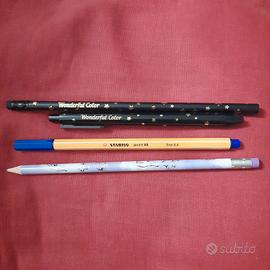 9 penne (nere e blu) e 4 matite, di marche varie (Wonderful Color, Bic, Pilot, Stabilo). Due matite sono raffiguranti Padre Pio ed hanno una scatolina per riporle. Tutte funzionanti.