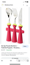 Set rosso di posate di design per bambini in acciaio con manico in plastica.