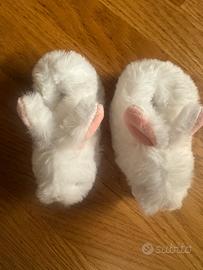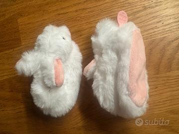 Scarpette di peluche coniglio biancocon sonagli, marca Doudou et Compagnie - Paris.