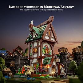 【Negozio di farmacia medievale】 - Ai margini della città si trova un negozio di farmacia a tre piani e il proprietario della costruzione fornisce pozioni necessarie per coloro che visitano. Il design di questo set da costruzione si ispira a vere e proprie scene medievali; comprende un farmacista in mantello, un apprendista farmacista, un gatto e un gufo, pieno di narrazione e divertimento.