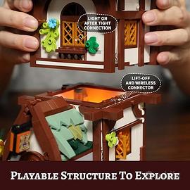 Architettura altamente giocabile: sotto il tetto sfumato verde, ogni piano corrisponde a una diversa partizione funzionale: dall'alto verso il basso è camera da letto, sala di raffinazione dei medicinali e negozio. Con diversi design a sgancio rapido e interruttori a parete, questo set di giocattoli da costruzione porta un forte senso di scena e giocabilità se combinato con le minifigure.
