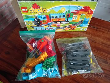 Set duplo in perfette condizioni e funzionante. Il treno va da solo e se inserita la pompa della benzina nella locomotiva si sente il suono di riempimento.