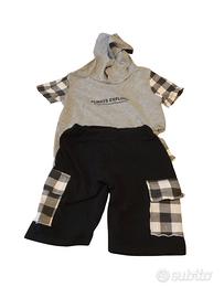 - #completo formato da #Maglietta #grigia a quadri con scritta ALWAYS EXPLORE e #pantaloncini #neri con elastico in vita e 2 tasche laterali a quadri che richiamano le maniche della maglia