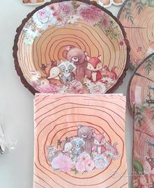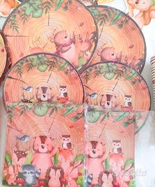Grande set 128 pz compleanno Animali del bosco! 20 piatti grandi + 20 piatti dessert + 20 bicchieri + 40 tovaglioli + in omaggio 4 piatti grandi e 24 tovaglioli