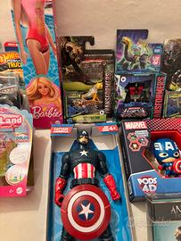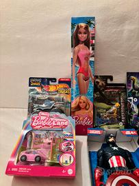 Set completo NUOVI SIGILLATI di Hot Wheels Monster Trucks “Sharks vs Dinos” – veicolo (Mattel) •Barbie – bambola costume rosa (Mattel) •Barbie Land Mini – playset con auto e accessori (Mattel) •Transformers Beast Alliance Cheetor – action figure (Hasbro) •Transformers Legacy (Takara Tomy) – action figure robot •Transformers Beast Alliance – action figure (Hasbro) •Marvel Captain America – action figure con scudo (Hasbro) •Marvel Pods Captain America – mini figure collezionabile •Fantastic Beasts (Les Animaux Fantastiques) “Similo” – gioco di carte (Horrible Guild) •Break Eez – personaggio morbido antistress in confezione Si cedono preferibilemente tutti insieme. Altrimenti contattare