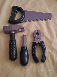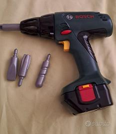 Set Bosch con trapano avvitatore a batteria con luci e punte intercambiabili, sega, martello, cacciavite, pinza, chiave inglese e caschetto di protezione. Spedizione o ritiro a mano zona piazza Frattini