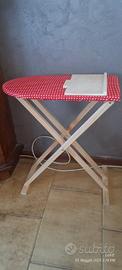 Tavolo presenta qualche difetto (colorato e piccoli segni) come da foto. Set ferro da stiro e set pulizia in legno.