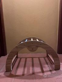 Tris di giochi pikler montessori ottimamente costruiti. Arco per arrampicata diametro 80cm, scala a triangolo altezza 80 cm e pedana balance lunghezza 120 cm. Qualche segno di utilizzo ma ottimamente funzionanti.