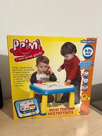 Maxi tavolo multi attività Primì per bambini 8-24 mesi, educativo con tante attività interattive, condizioni perfette nella parte superiore mentre nella parte inferiore dove vanno incastrate le gambe c’è qualche crepa nella plastica.