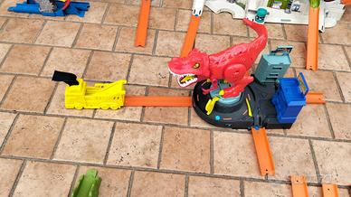 Questo set contiene il mega parcheggio (funzionante) completamente nuovo, il set dello squalo con pezzi di ricambio (funzionante) usato pochissime volte, il set hot wheels vulcano (funzionante con piccolissimi difetti), il set hot wheels t-rex (perfettamente funzionante) mai usato, 2 giri della morte, un motore per spinta, un ponte distrutto che si sposta in base al peso e moltissimi ricambi. Tutto ciò in perfette condizioni e pieno di ricordi, un perfetto regalo e divertimento assicurato.