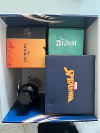 Box regalo comprensiva di: Tazza Mug ‘Stitch’ Disney; Borraccia termica ‘Star Wars’; Lampada luminosa ‘Simba’ Disney; Lampada luminosa ‘Spider-Man’ Disney. Vendita preferenziale per chi acquista tutto il set.