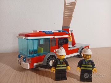 Caserma dei pompieri con auotscala e furgoncino, tutti i pezzi presenti tranne la pertica della base.