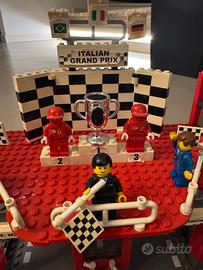Vendesi set LEGO originale "Ferrari Finish Line" (8672), un vero pezzo di storia per gli amanti della Formula 1 e del Cavallino Rampante! Il set riproduce il podio e la linea del traguardo del Gran Premio d'Italia.