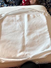 Set lenzuoli per culla composti da un lenzuolo, salva pipì con angoli + 1lenzuol0 con pupazzetto e bordura azzurro +2 lenzuoli azzurri inferiori di cui uno con elastici +1 federa ricamata