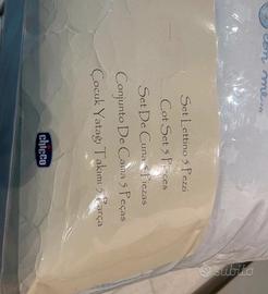 Set lettino 5 pezzi Chicco. Mai usato, in confezione originale. Colori bianco e celeste. Prezzo trattabile nei limiti del possibile