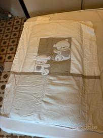 Copripiumino e federa mai usati, paracolpi usato pochissimo e presenta una piccola macchia (come in foto) nella parte posteriore(esterna al letto)