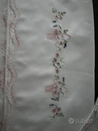 Set lettino lenzuolo federa ricamo cesto fiori vintage.