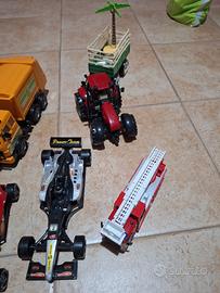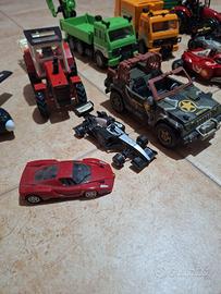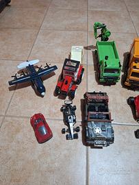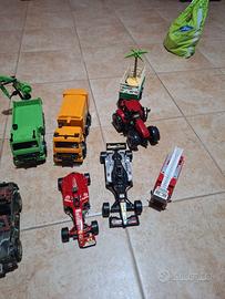 set macchine da corsa, una Ferrari, camion di vario genere e trattori, tra cui camion militare e aereo carabinieri