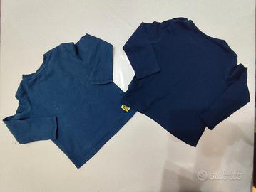 set di magliette manica lunga in cotone primaverili blu, una marca Kiabi (3 anni, ottime condizioni come nuova), l'altra Original Marines (2-3 anni buone condizioni,. imperfezione nella stampa come da foto). Altri articoli della stessa taglia in armadio. spedizione veloce.