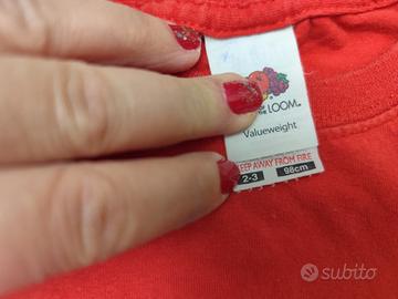 set magliette manica corta bambino in cotone, 2-3 anni, 98 cm, rosse con stampa un po' usurata. buone condizioni. altri articoli della stessa taglia, spedizione veloce.