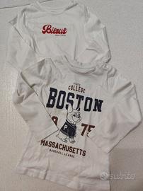 set magliette manica lunga cotone bambino 18 mesi, una marca Kiabi, l'altra Prénatal.