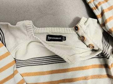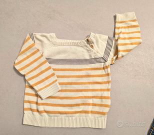 Set composto da maglioncino a righe e jeans. - Maglioncino con righe gialle e bianche, in cotone leggero. - Jeans blu in denim con elastico in vita. 12-18 mesi. Ottime condizioni! Guarda gli altri miei articoli da bambino: se sei interessato a più articoli faccio ottimi sconti!