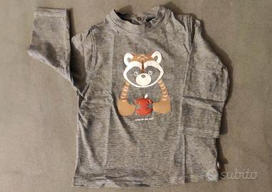 - Maglietta grigia a collo alto con stampa di un procione.
