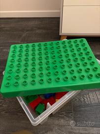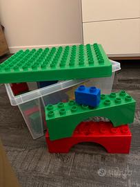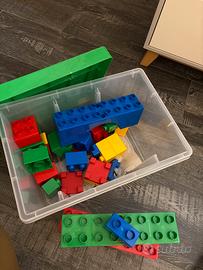 set di mattoncini grandi in plastica, ideali per bambini piccoli. Colori vivaci (rosso, blu, verde, giallo) e dimensioni perfette per stimolare creatività e manualità in sicurezza.