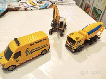 Mezzi da lavoro composto da betoniera, ruspa furgone. Bellissimi e perfetti
