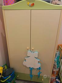 Set marca Mibb con armadio, settimo che all'occorrenza diventa vasca per bagnetti e il suo lettino (il lettino è in buone condizioni solamente le ruote sono da fissare meglio) ..