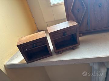 Vendo delizioso set completo di mobili in miniatura per camera da letto, realizzati artigianalmente in legno. Perfetti per arredare case delle bambole in stile classico, vintage o per collezionisti di miniature. • Il set comprende: • 1 Armadio grande a 4 ante con specchio centrale sagomato e dettagli a rombo. • 1 Comò (cassettiera) a 3 cassetti. • 2 Comodini abbinati con vano a giorno e cassettino. • Materiale: Legno massiccio con finitura noce/scuro. • Stile: Rustico / Arte Povera. • Dettagli: Pomelli fissi, ante decorate e specchio reale. • Stato: Ottime condizioni vintage, senza crepe o parti mancanti.