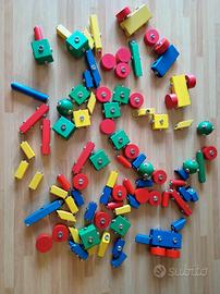 4 giochi Lego + grande quantità di macchinine + + set treno in legno + gioco didattico in legno a incastro.