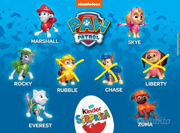 set n. 5 personaggi Paw Patrol Kinder spese spedizione a carico dell'acquirente