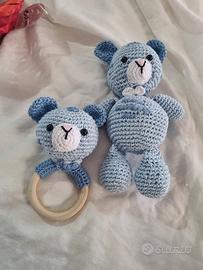 #handmade #regalipersonalizzati #sonaglio#ciuccio#catena #pupazzo #fischietto #peluche #catenina #set #portaciuccio #sonaglino #orso #rosa #blu #nascita #orsetto #orsettopeluche #nascita #bimbo
