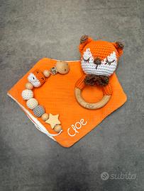 Set Nascita Handmade – Bavaglino in Cotone/Mussola + Portaciuccio + Sonaglio Personalizzato