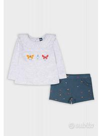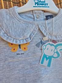 Marca : Street Monkey Taglie Disponibili 3 Mesi 6 Mesi 12 Mesi 18 Mesi 24 Mesi Set Bambina con Maglietta a Maniche Lunghe con Farfalle e Shorts