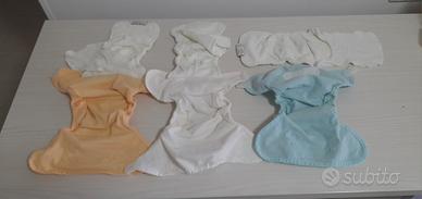 Vendo n. 8 pannolini lavabili, 5 marca Naughty baby con 5 inserti e 3 marca Eco Pannoli con relativi inserti. Sono 2 modelli diversi i primi (Naughty baby) l'inserto si inserisce, i secondo si attaccano con le clip come nelle foto. Solo lavati e non usati. Per info scrivetemi.