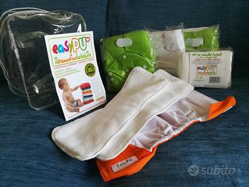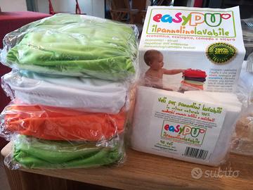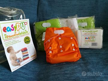 Set di 4 pannolini lavabili con inserti, nuovi mai usati. Taglia unica dai 3,5 ai 16 kg